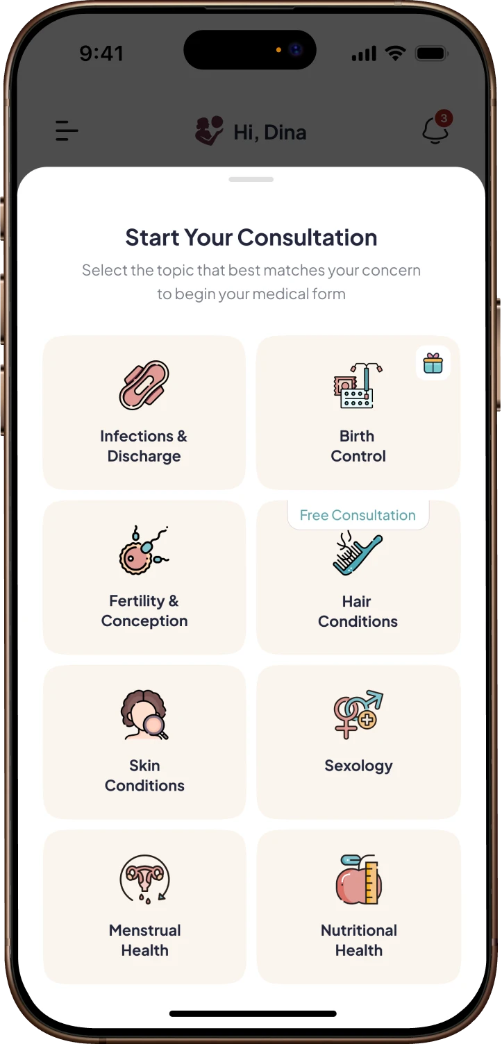 Whether you're managing your cycle, choosing birth control, trying to conceive, dealing with infections, or navigating skin and hair concerns! you don't have to figure it out alone. Get expert, judgment-free care across women's health, nutrition, sexual wellness, and dermatology, with guidance that's practical, clear, and made for real life